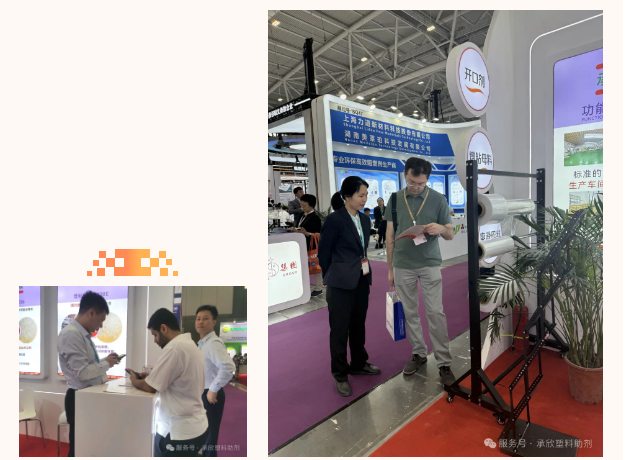 承欣以“環(huán)保復(fù)合薄膜用防粘爽滑母料”為品牌定位,聚焦防板結(jié)、不起粉的開口劑,持續(xù)加快技術(shù)升級(jí)和產(chǎn)品迭代。展會(huì)上,承欣重點(diǎn)推出開口母粒、防粘母粒、爽滑母粒、抗靜電母粒等主打產(chǎn)品,開展首日就吸引了眾多來自東南亞、中東、非洲、歐洲、南美等地區(qū)的客商前來參觀了解、洽談合作。